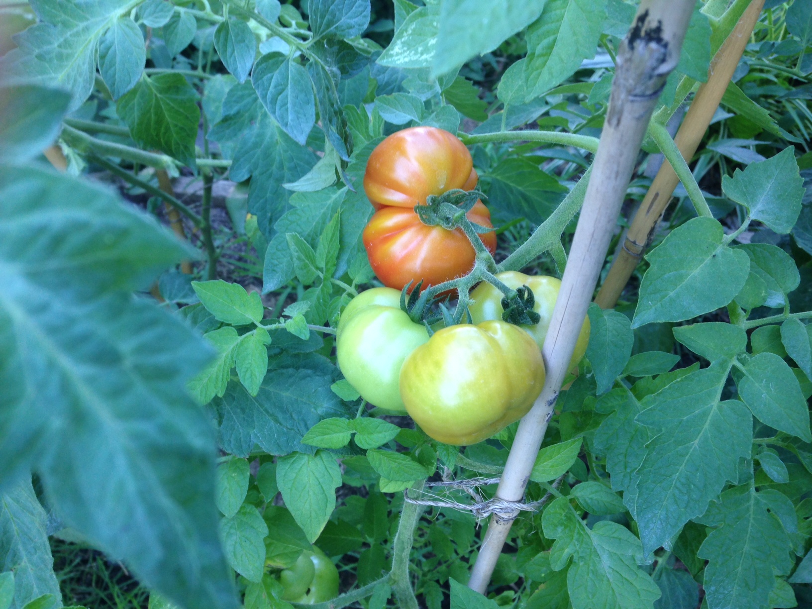 I am seeing more heat damage from the days that we hit 104, 107, etc. Burns the exposed tomatoes, the sweet peppers too. I can still use the produce in sauces or salsa, I just have to trim the burned areas off.