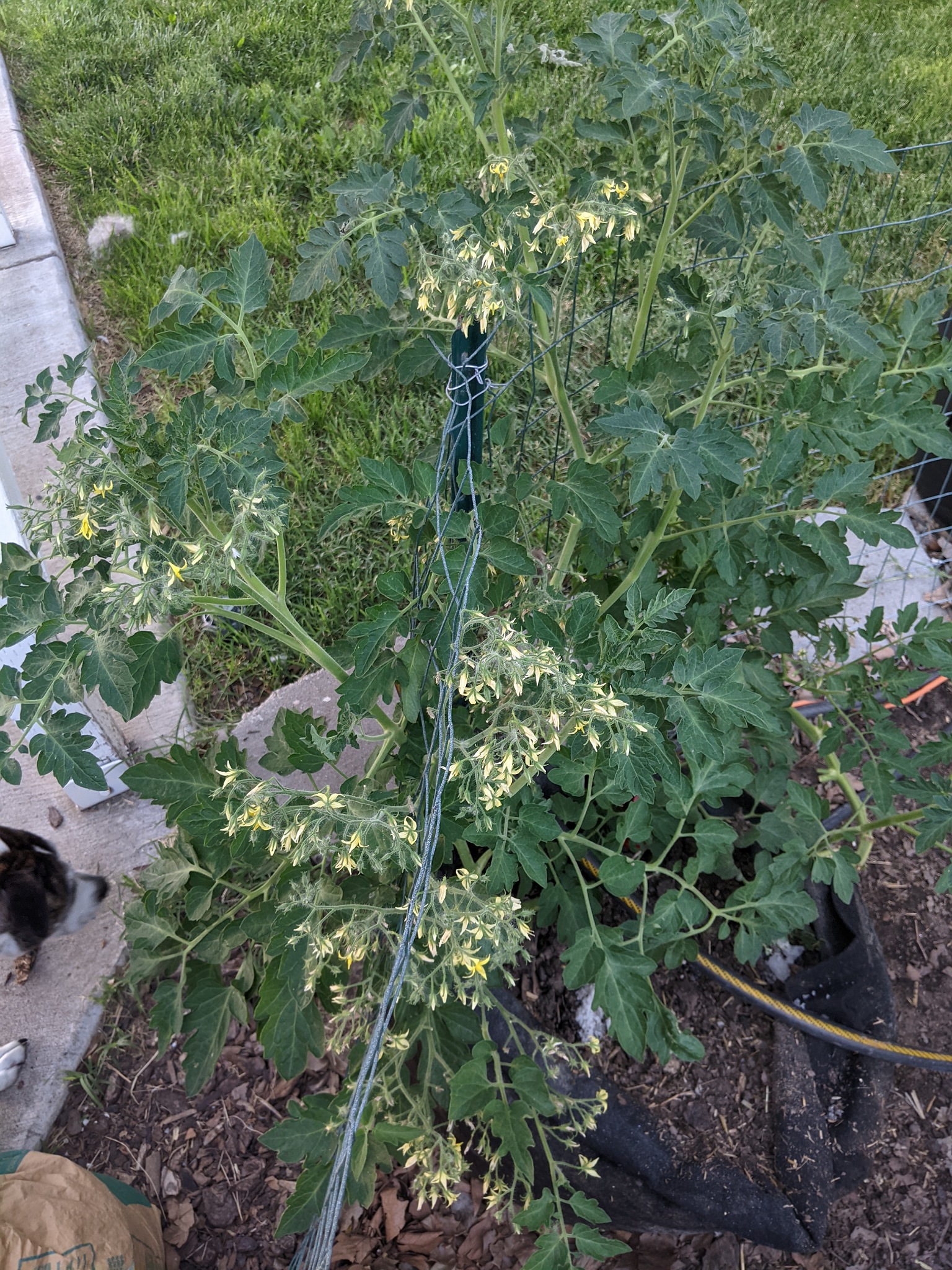 I've fed it calcium but I think it was still insufficient so I fed it some more. I was having buds drop. Hopefully it'll start to set fruit soon. If they taste good this is a keeper. Barry's crazy yellow cherry tomato has gobs of blossoms and is relatively compact compared to other cherries I've grown. I have a yellow pear cherry that is just so enormous and the clusters only contain about 5 -7 fruit each.