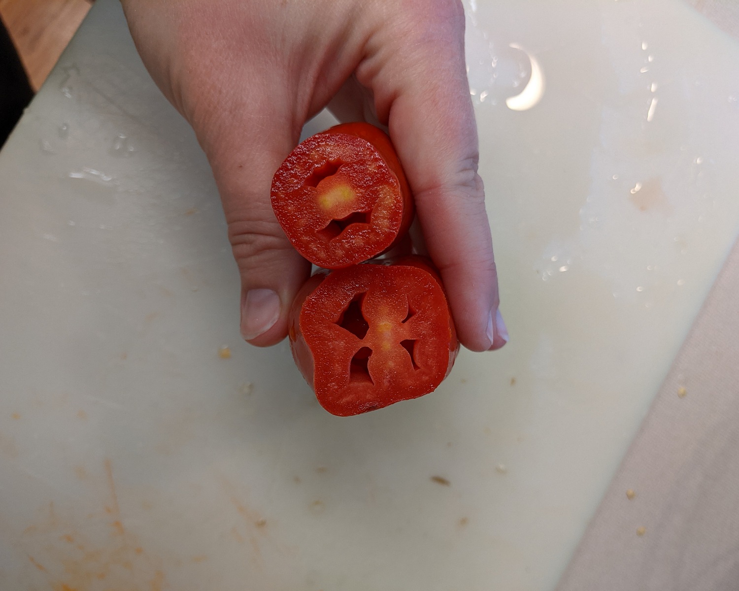 What's funny is that they have less wet gel inside but produce more tomato product. These are great for sauces and such. I tried juicing beefsteak one year but once you cook the volume down the ratio of fruit weight to sauce is pitiful.