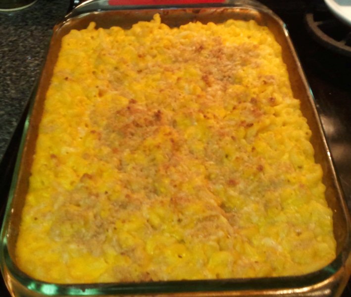 Made my second attempt at a pretty tasty low-fat homemade macaroni and cheese earlier this week, and it was highly successful. The secret to the color and lack of tubbyness is the use of fozen winter squash as a filler, though it still has plenty of cheesy goodness. Also one of those meals that tastes awesome warmed up in the microwave. PM for recipe.