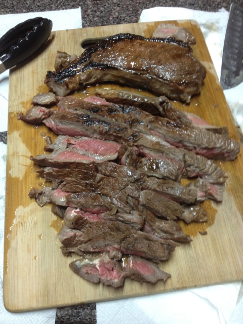 Nothing fancy this weekend. Pan-fried boneless/skinless chicken thighs on Friday: Smoked a brisket for about 9 hrs on Saturday. I made a kinda paste that consisted of brown sugar, salt & pepper, cumin, red pepper, chili powder, ground mustard, garlic & onion powder, and then yellow mustard and root beer. Coated about 12 hrs before hand. Came out pretty good, and was gone before I could get the sliced pics: Went great with the mint juleps, even though the race was inconsequential: Finally, breakfast of champions, fried eggs and over de-cased boudin on Sunday: