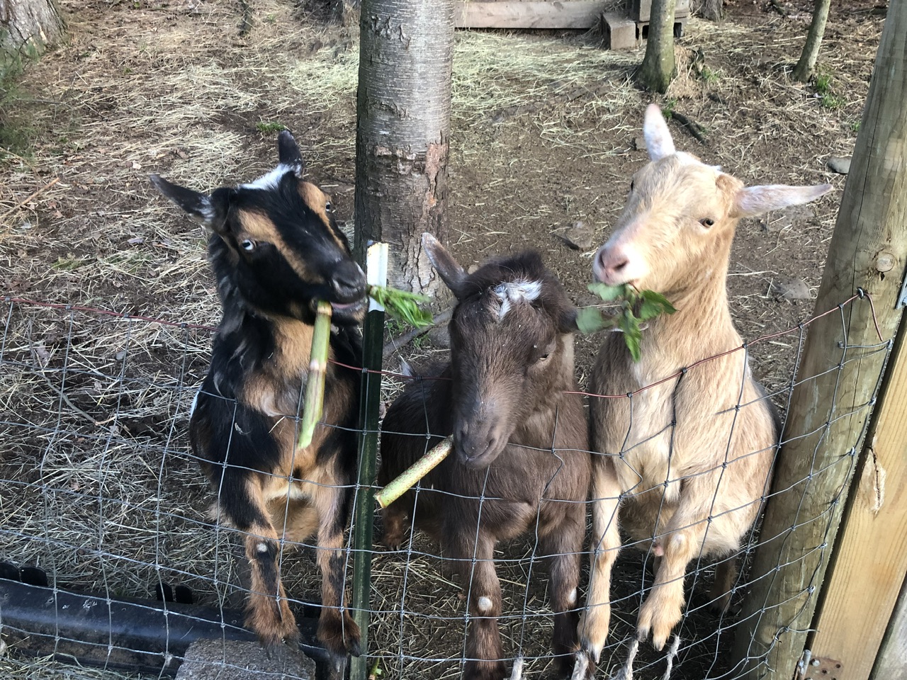 Japanese Knotweed is an invasive species common here in our area of Upstate NY. It’s frickin’ everywhere and believe me, if you don’t have it, you don’t want it. It grows tall, almost bamboo like, and chokes out native plant species. However, if you have goats, it’s manna from Heaven to them from the moment it sprouts. I’ve even cut whole plants and hung them to dry like tobacco for winter feeding. ( It’s more a pain in the ass than it’s worth though.) Watching the boys eat the new shoots like celery is absolutely hysterical. I may make a video because the crunching adds to the humor. I got a half bucket this evening: You could say they loved it: