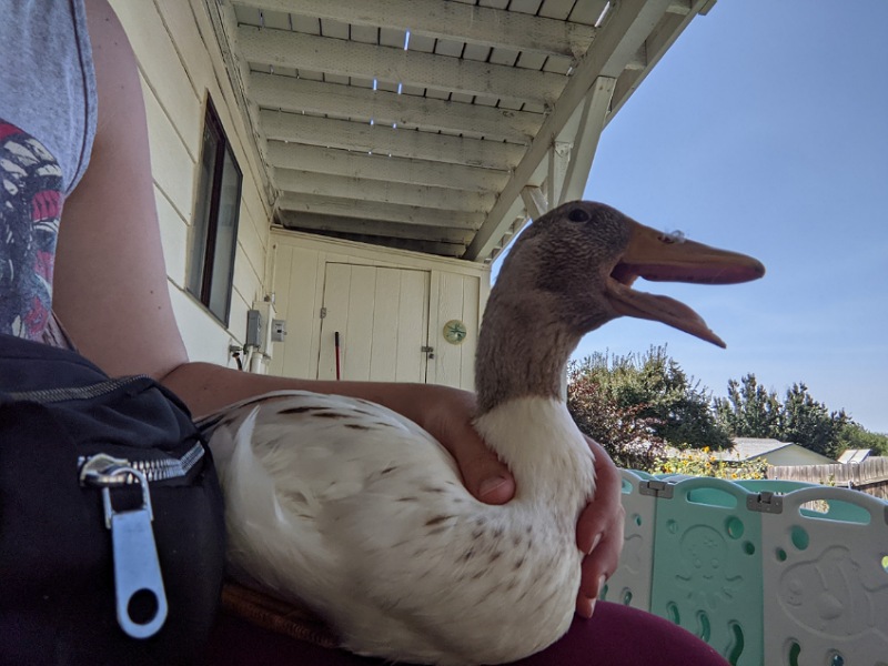 Just sold my first duck. $25 for a mixed breed, 7 weeks old duck ain't bad. She was pissed while we waited.