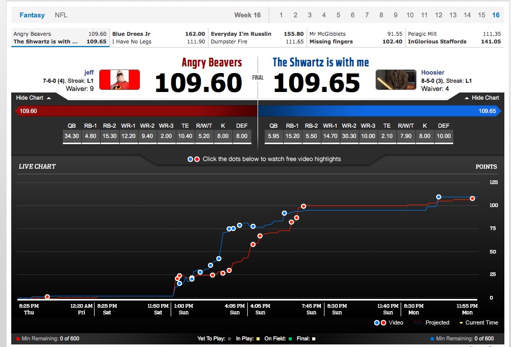 Good game, @Hoosiermess ... it was close, and if only I played Baldwin who was listed as "questionable". 2nd place ain't so bad, I guess... but it was damn close.