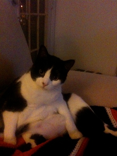 I've got some stuff to hopefully cheer everyone up after my last post, which was apparently depressing. Here's a video of Gandalf chasing a laser. I'm sure anyone with a cat or dog has probably witnessed this behavior, but it cracks me up everytime. Lucy makes an appearance walking across, uninterested in everything. She's a fatfat. Here's a picture of Lucy doing her best fat slob impersonation.