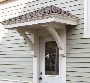 I'm not sure if I should put this here or Bob Villa thread, but since it's mostly going to be wood (I think), I'm putting it here. I don't have gutters on my house. My deck door takes a ton of splatter when it rains, and it's causing some moisture / rot issues. So, I need to do something. I was going to try and find just a plain awning, but I can't really find what I want that will look right. So, I'm considering building something instead. I have left over shingles from building the house, so I'll use those. I'm not sure if I want a small gable, or something with hips, or just a plain shed. And, I also have no idea what to call it to search on Google. I was going with "entry door overhang" so far, that seemed to get decent results. Probably something like this: or this: Does anybody know a good online source for plans for something like this? I also liked this video that shows what appears to be a kit assembly that I might could copy, but I can't seem to track down any info on it.