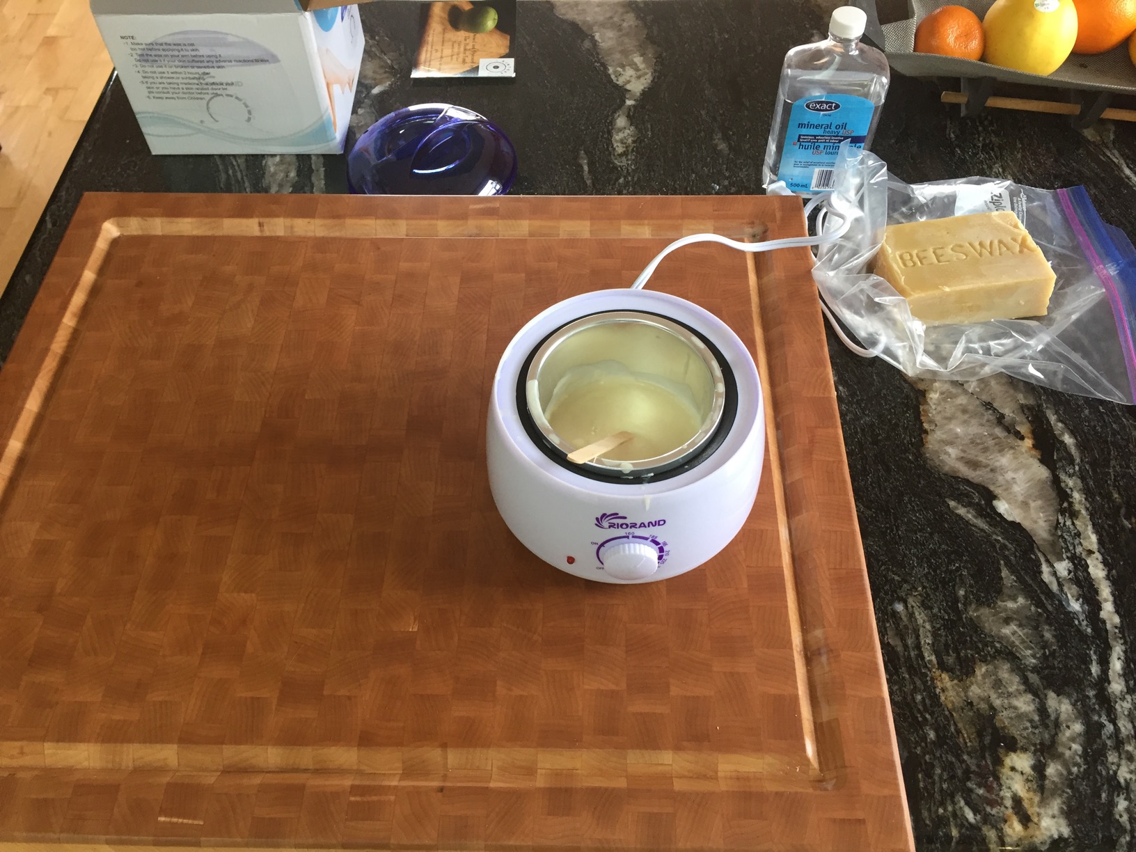 FYI, Amazon also seems to be having a big sale on "do it yourself wax kits". Not that I'm looking to do deforest my legs or anything, but for $14 it's a fucking cheap heater for waxes and finishes. Last night I just did up a 4:1 mix of mineral oil and bees wax to redo my cutting boards, and it worked awesome. Heated it all up, wax melted into the oil, applied warm/hot, let it sit overnight and soak in, buff this morning, and it is a really nice cutting board finish that will last for quite a while.