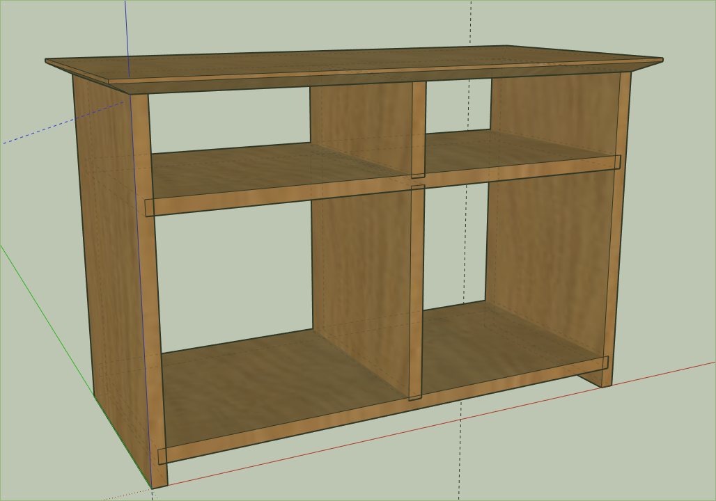 For example I whipped this together in Sketchup: but I'm not totally enamored of the design (it screams "Why not just build this out of plywood"), and I'm not 100% on the joinery. It's all 1" thick with horizontal dados 1/2" deep and vertical dados 1/4", which should work, I think?
