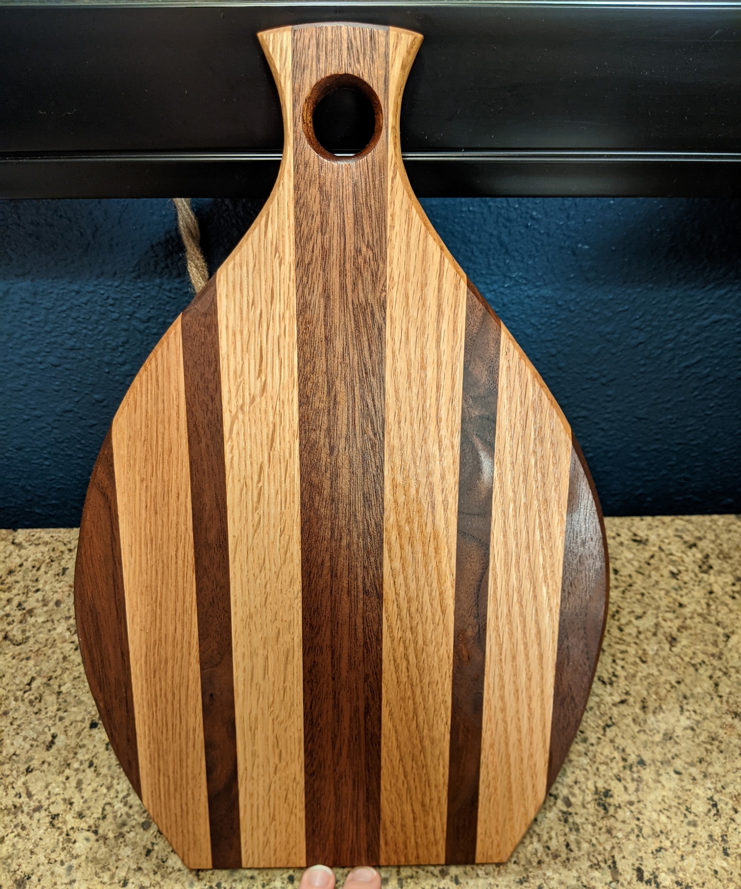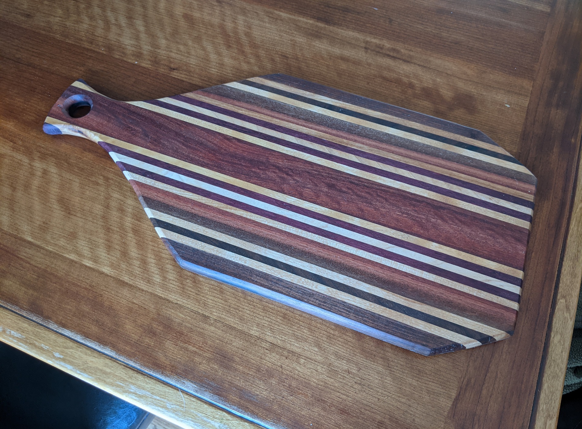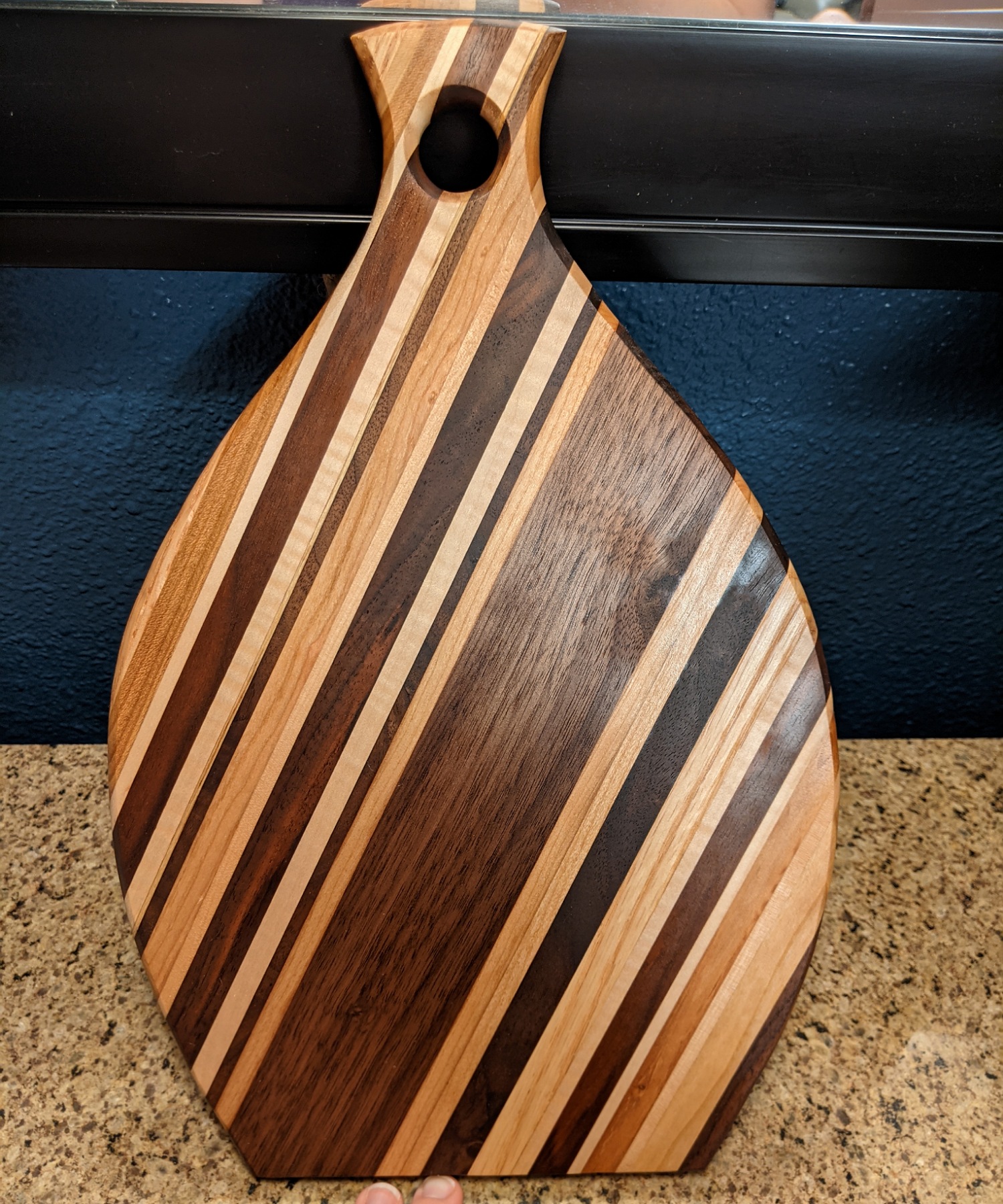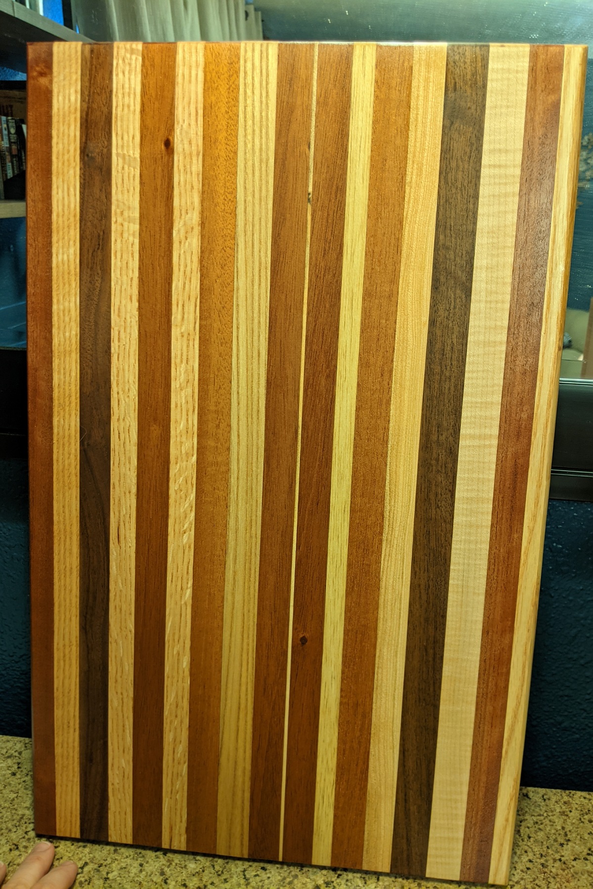 I am lucky to have a neighbor and friend who is a lifelong woodworker. Like, his dad is a professional artistic woodworker and my neighbor has been using routers since age 7. Anyway. He has a lot of scrap and a love of teaching. I just finished a few cutting and charcuterie boards for gifts.