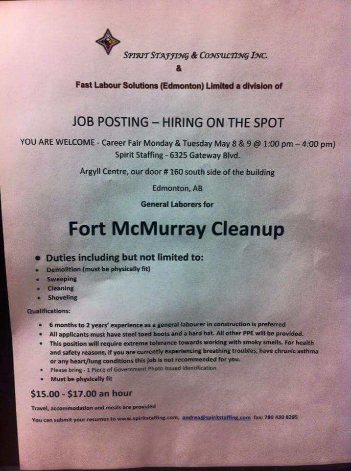 As someone who has had a run in with fire, I feel for all the people affected by this awful situation. Thankfully it seems as though the worst is passed. Two days before Christmas in 2008, we had a fire in an apartment we we're renting in Chicago, in Wrigleyville. It was an old, oddly designed brick building in which all four of the outer walls of our unit were brick, limiting the actual fire damage to just our unit and the garage below (only unit in the building without upstairs neighbors). Long story short, several water lines froze. My wife and I both had to work that evening so we called maintenance told them we needed it fixed ASAP and left. Fuckers burned that bitch to the ground. About 2 hours after I left, I get a call from our neighbor saying our place was engulfed in flames and the fire dept was on site. Both bedrooms, bathroom and living room were entirely engulfed, too the point that the floors collapsed into the garage below destroying 2 cars (not ours) and burned through everything. Its a miracle the fuel in the cars didn't ignite. Total Loss.The only things that weren't destroyed in that fire we're our cars and the clothes on our backs. No one was injured, no one died, no pets lost. For what it was we we're very fortunate. But, it's a very weird feeling (numb? stunned? disassociated?) waking up and realizing that you can't even brush your teeth or change your underwear because you literally have nothing else to wear. We had renters insurance thankfully, but nowhere near enough. We were thinking about valuable stuff being stolen, not every single thing, down to socks & razors being gone. We ultimately saw at it as a test of our resolution in the face of adversity as a couple, as this was 7 months before our wedding. I can honestly say that if it had to happen, we had the best possible outcome, as I said no injuries or fatalities resulted from the fire. And we learned our lesson, definitely overinsure yourself on personal property replacement costs. The difference in premiums between $25K (what we had) & $250K (what we now have) was less than $200/year. I hope the people of Ft. McMurray are able to find their way back to normal life as soon as possible, and wish them all the best.