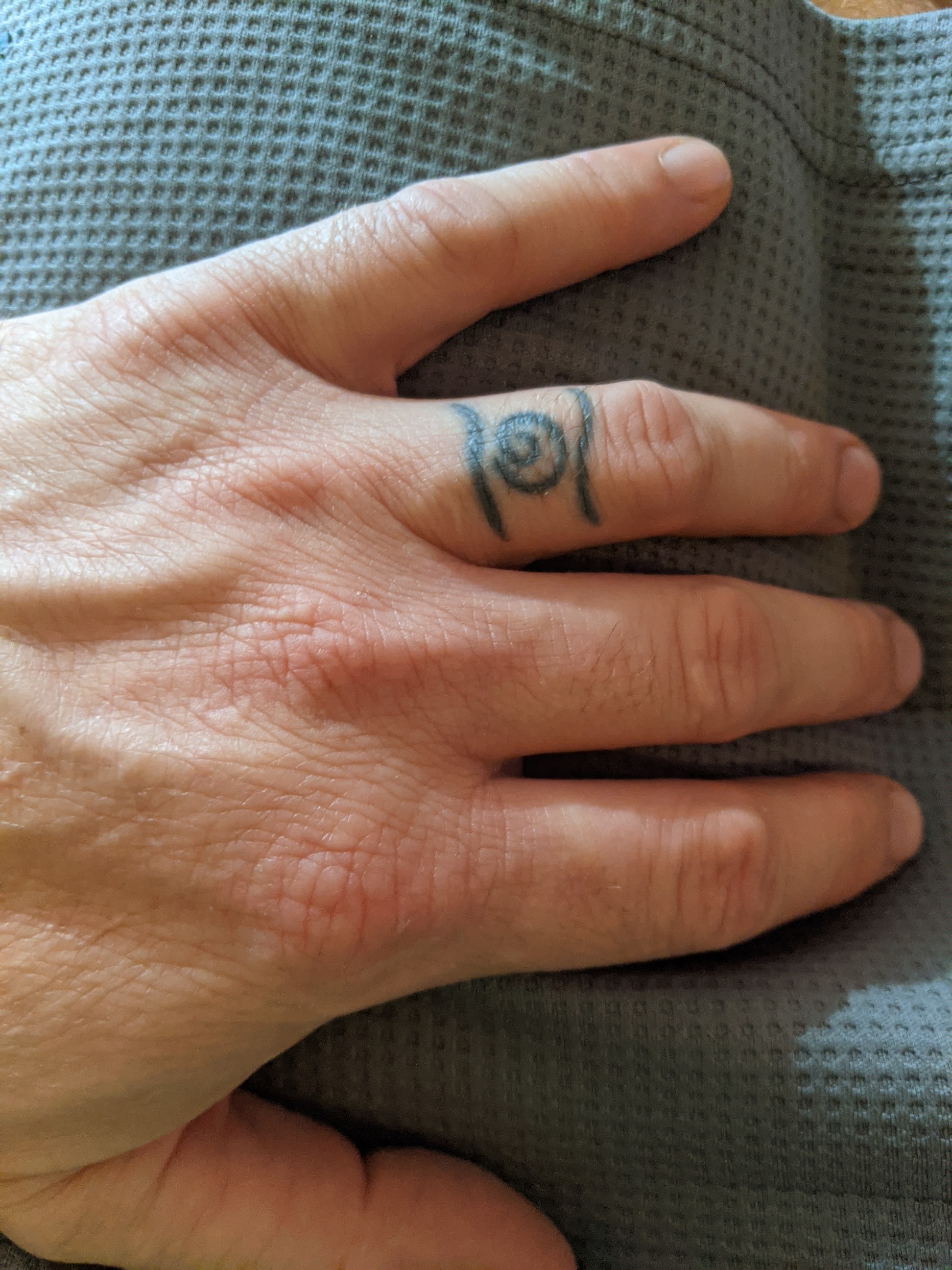 We did it, after mine slipped right off my finger into the Chesapeake Bay. Wife's engagement ring and wedding band are in the safe. Our rings are suppose to represent wind and water. Have you chosen a design or just going for a black stripe.