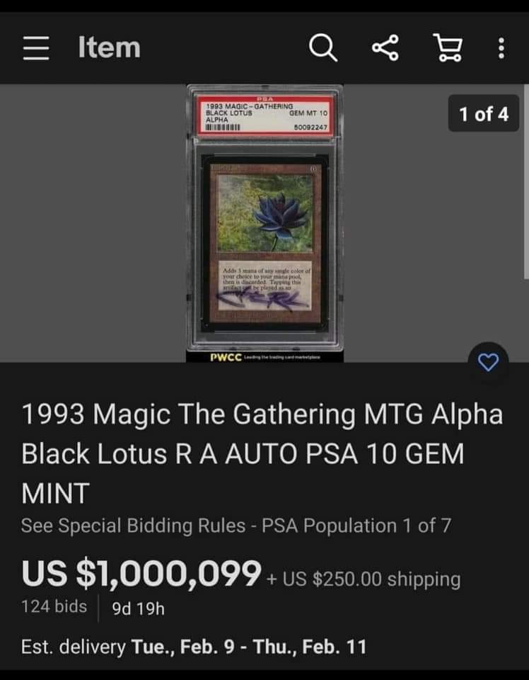 I'd read somewhere that the Canadian government will gift you something like a section (160 acres) of remote land if you actually move on to the property and improve it for a number of years. Any truth to that? I wish to hell we still had the land to do something like that, I'd be all over it. I finally decided to rid myself of some high dollar baseball cards while the market is still viable. I submitted about 40 of them to an auction house and with 2 days left in the auction they're already racked up over $6k in bids. I have about $2500 invested in them. Seems like I picked the perfect time to unload them, as of right now only one card is sitting below what I paid for it. A lot of them are at 3-4x what I paid...and all of these were bought in the past 2-5 years.