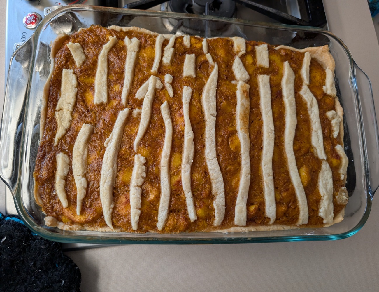 It's not the most beautiful but I had to be quick... Here's my first peach cobbler from my peach tree!