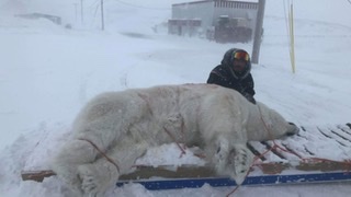 So an Inuit family man up in Quaqtaq was forced to kill a Polar Bear breaking into his home. Look at this SIZE of this fucking thing. Damp and steaming from the womb, they are man-eating killing machines: ...we having warning signs for coyotes around here. This dude had four kids with this war-beast smashing in his door.