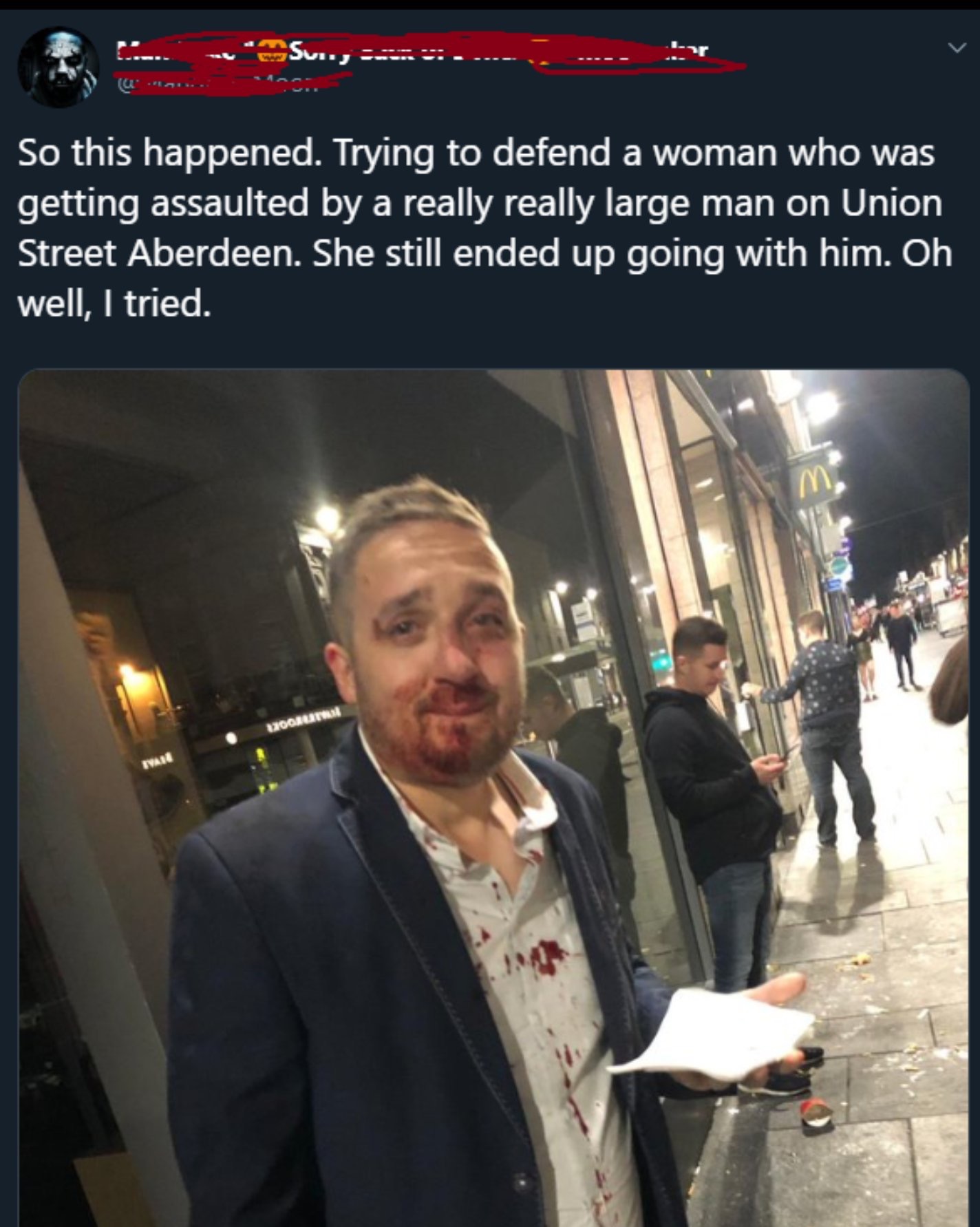 Good example on why you don't get involved with any domestic disputes. It's kinda a hot topic in the CCL community, because depending on where you live, the laws are vague or sometimes allow you to act in defense of others in certain situations (like if an unrelated to you person is getting attacked with an ax). Do you step in and defend them? If they have a relationship with their attacker, sometimes the attack will stop but then they'll both turn on you (which is how the ax attack ended for one Good Samaritan). Personally, unless a member of my immediate family is involved or it's some other weird circumstance (like an officer asking for assistance), I'm not stepping in to defend anyone but myself. I'll call the authorities, I'll record video evidence if I'm safely able to do so, I'll provide a witness statement to the best of my recollection. But in no way am I endangering my life or financial security. Fuck that noise.