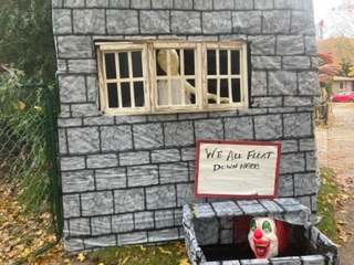 The piece-de-resistance at our house can’t be seen: we dangle small resl-life-sized spiders from fishing line from the overhead maple trees along sidewalk so they are right at head-level. Little ones won’t hit them, but adults do and the arachnophobes… they SCREAM.