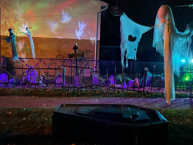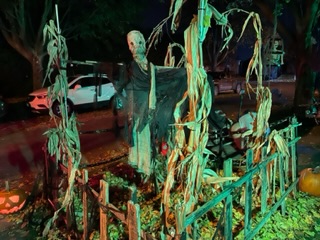 Nice job dude! I didn't do fuck all... turned the lights off and cooked inner and drank wine in the back, hiding all light from the front of the house. Our neighbour did it up proper, but only got about 8 trick-or-treators, all under 10, before 5:30pm. Validated our decision to just ignore it this year, again.