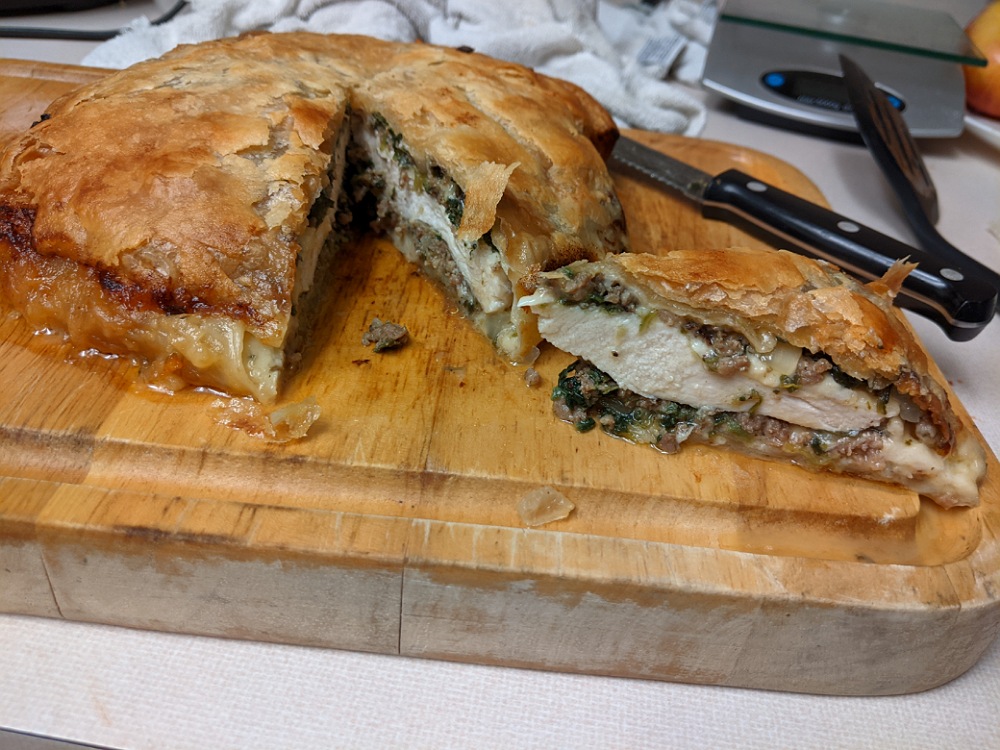 I say Happy Holidays so neener neener. It was the only star cookie cutter I had. I'll have to scout around for some normal stars to add to my collection. The mint pesto was perfect in this. I added extra asiago on top of the pesto. Quite tasty, and hardly any room for the mashed pumpkin, fresh cranberry sauce, or this: