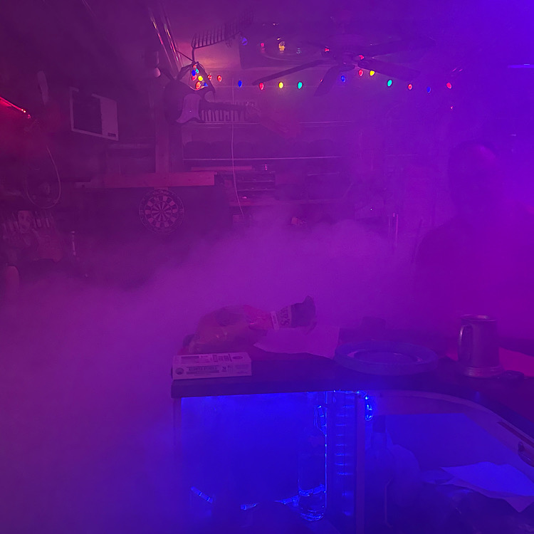 That’s a combination of multiple fog machines, incense and weed. It’s so foggy you can barely make out the laser lights.