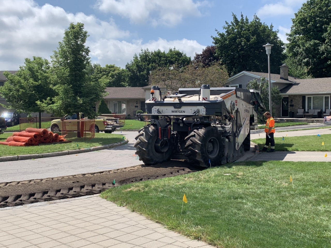 Although infasctructire renovations are a huge pain, I like that they do, in fact, happen. I do love how they now take extra care in this city doing neighbourhood work. Note the hedge and tree protection, even for private lots. If they see you have a custom driveway (like yours) they’ll also be very careful around it, because they DO NOT want to be replacing that for you.