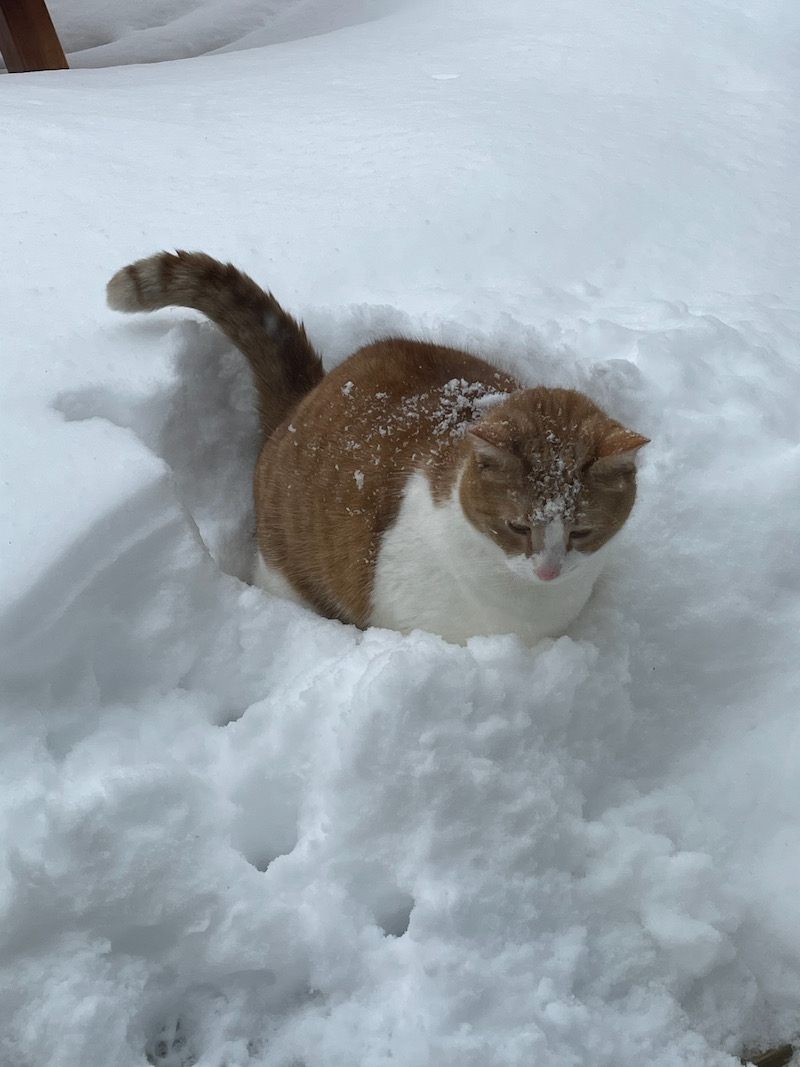 she loves being outside and is very angry with me right now. She thinks the white stuff is my fault I believe.