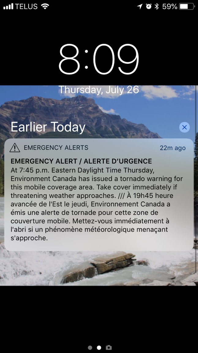To add to your previous post, that new warning system is amazingly effective. It cut through every phone, television and radio station at exactly the same time. Does the same for Amber alerts too.