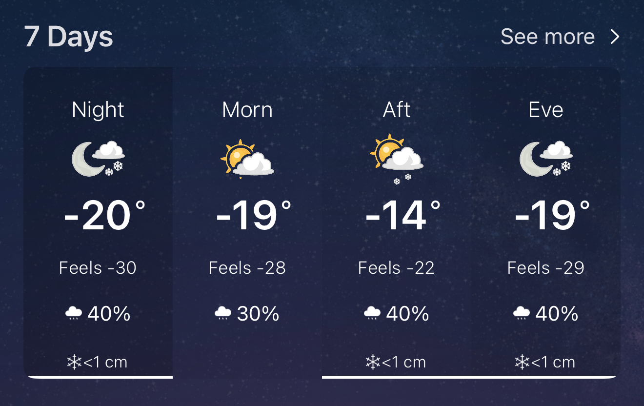 Luckily I can control both the furnace and the remote start for the truck from bed. The shit I do for my dog... a 6:45 departure to take her to camp. Not sure I'd do that for a kid... but I know she'd not let me get any work done if she stayed at home.