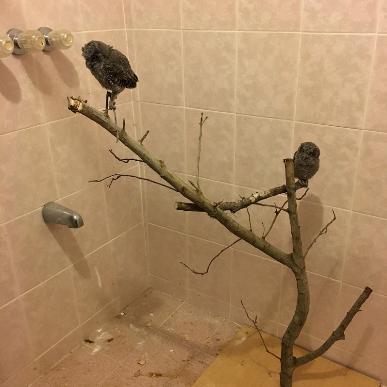 Owlets, bitches! Spoiler Jungle Julia thought for sure the latest one (on the high branch) wasn't going to make it, but after dripping some water in its mouth and a few mealworms, it perked right up.