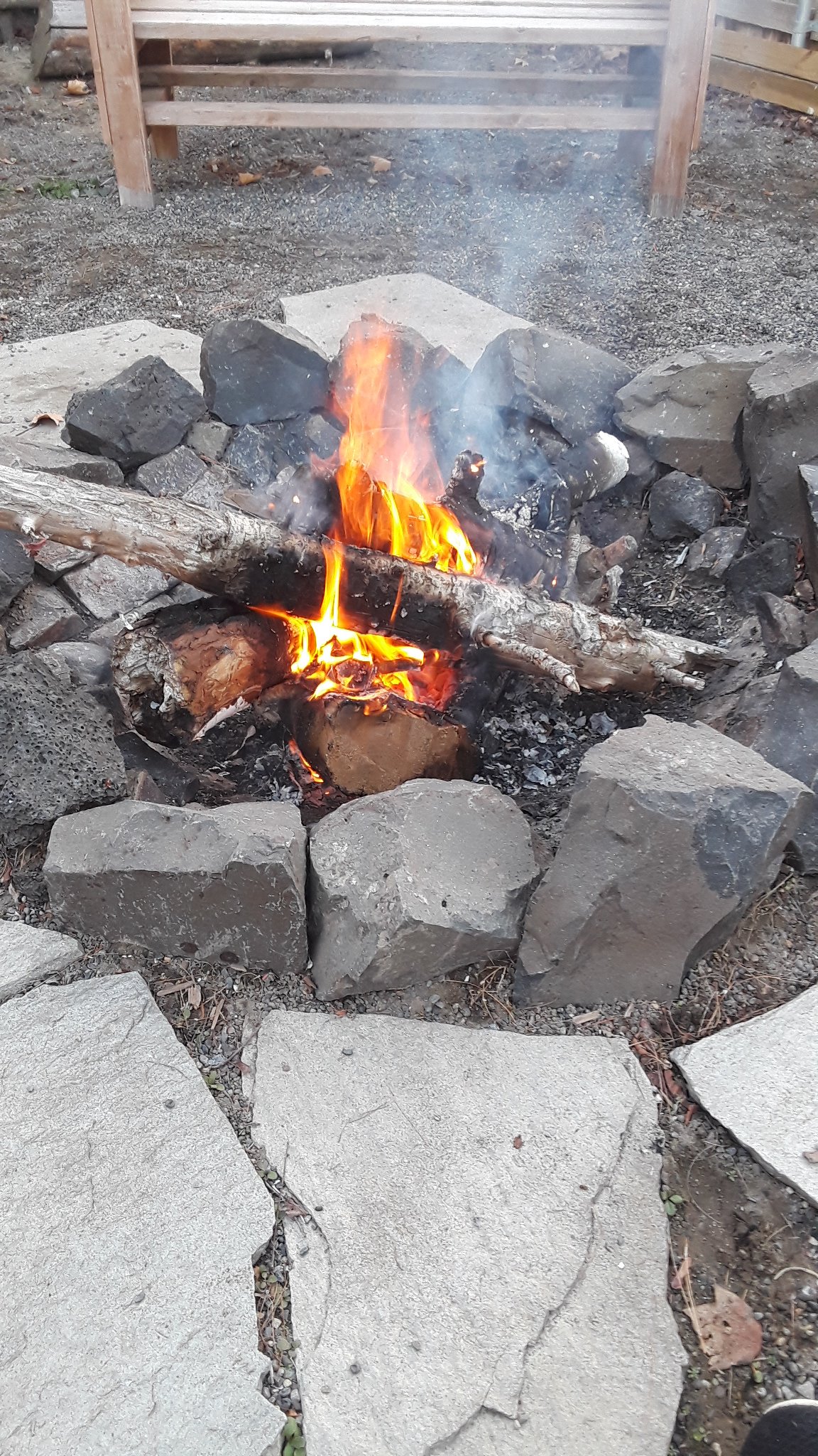 Even my dog with a sweater was like eff that and went inside. They were huddled on the bench with me for awhile, shivering. El hubs came out to throw another log on the fire for me and they went in him. Girl dog is almost totally bald on her belly and can't hack it. I'm out her til the logs are done. There aren't a lot left on the pile and I'm not sure where I'm getting more so I'm making these count.