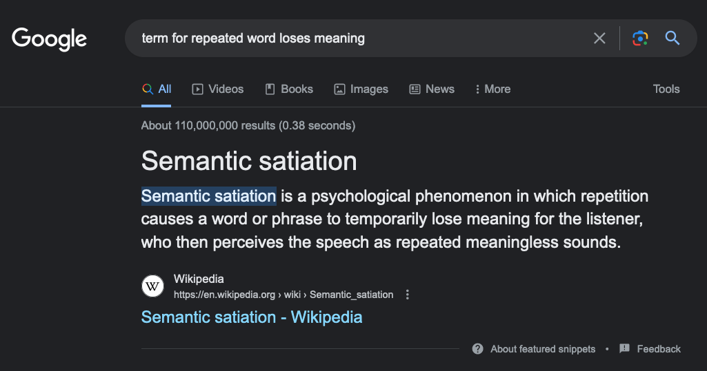 Semantic satiation. I occasionally have it happen with really common words like ”the” and it really bugs me out.